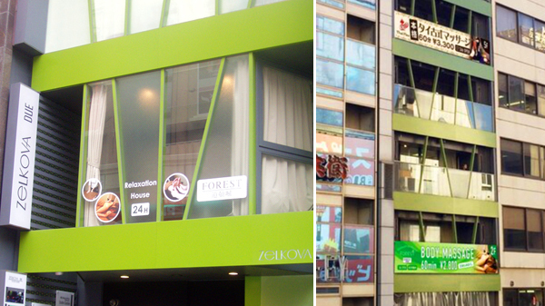 ZELKOVA( 欅・ケヤキ)の枝葉を模した、グリーン(緑)を基調としたオシャレなデザイナーズビルの2Fにあります。道頓堀橋から見た都会の中のオアシス「道頓堀FOREST(フォレスト)道頓堀本店」