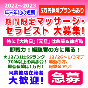 2022~2023! 年末年始の短期!期間限定マッサージ・セラピスト大募集!