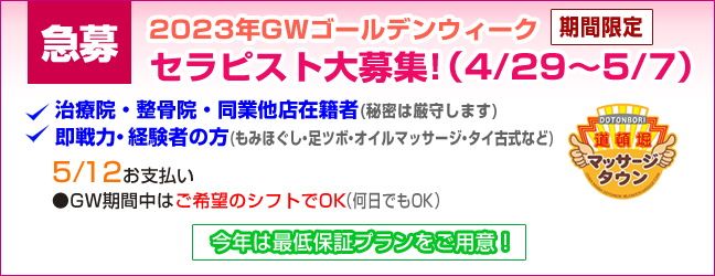 2023年GWゴールデンウィーク期間限定セラピスト大募集!
